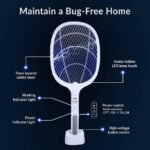 The 2-in-1 Mosquito Killer Racket offers a smarter way to deal with flying insects. Use it manually to take down flies and mosquitoes in mid-air, or place it on its dedicated charging base and activate the Automatic Trap Mode. The built-in UV light attracts pests toward the high-voltage grid, providing you with a quiet, bug-free environment all night long.